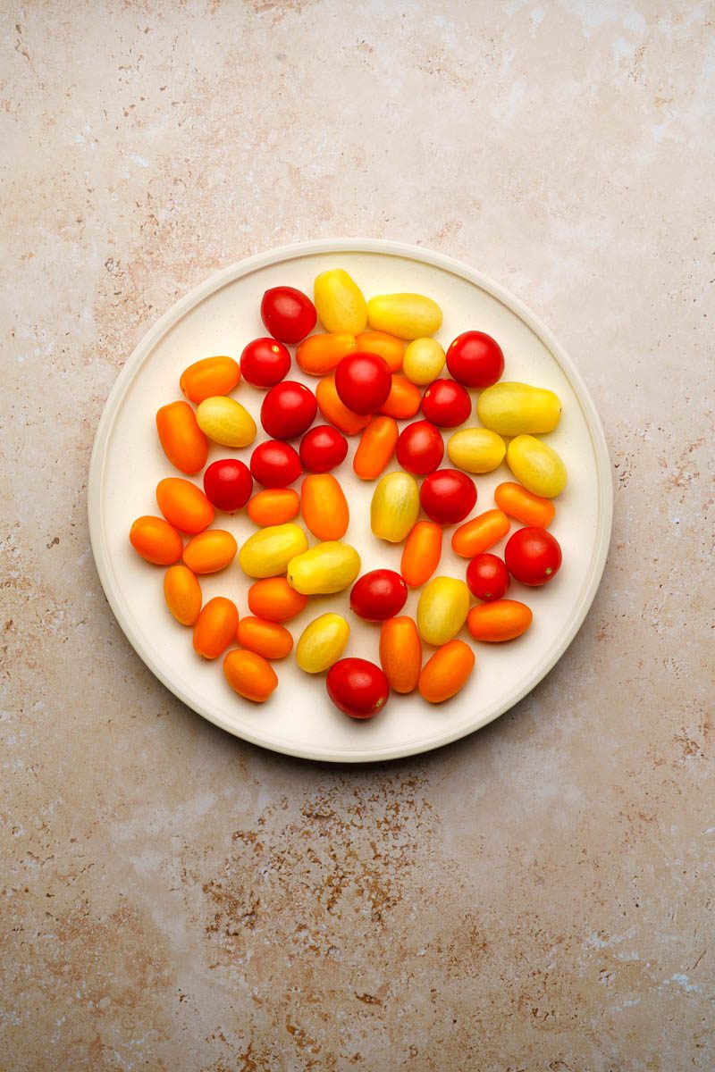 I’ve made this dish to celebrate one of my favourite tomatoes, the cherry tomato. I’ve always loved a cherry tomato because it’s small enough to enjoy in one mouthful. I thoroughly relish munching on cherry tomatoes raw and without any dressing. They have such a tremendous sweet flavour for such a small fruit.