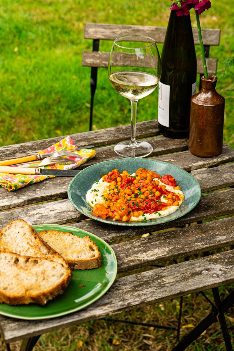 This braised tomato and spiced chickpea toast recipe is one of my favourite summer meals. It’s effortless to make and yields a fantastic fresh dip that is sublime with a slice of good sourdough bread. I mostly use it as a quick weekend meal in the sun, which serves two generously. It also makes a perfect appetiser or accompanying dish to the main meal.
