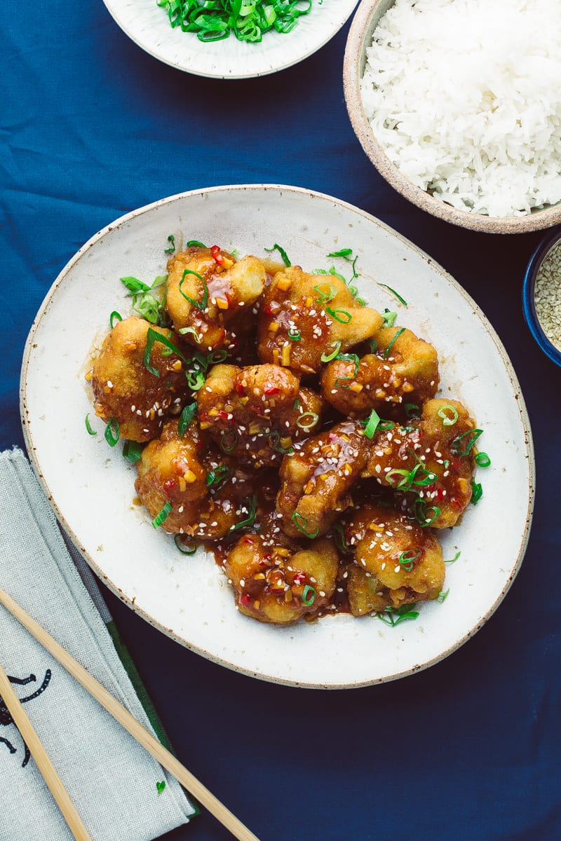 Thanks to cauliflower’s hardiness and versatility it’s broadly available year-round in the UK. The peak season, however, runs from spring until late summer. If you’re looking for other sweet and sour vegetables to substitute for the cauliflower other brassicas like broccoli work great. Alternatively try using par boiled sweet potato cubes for vegetable alternatives to tofu pieces.