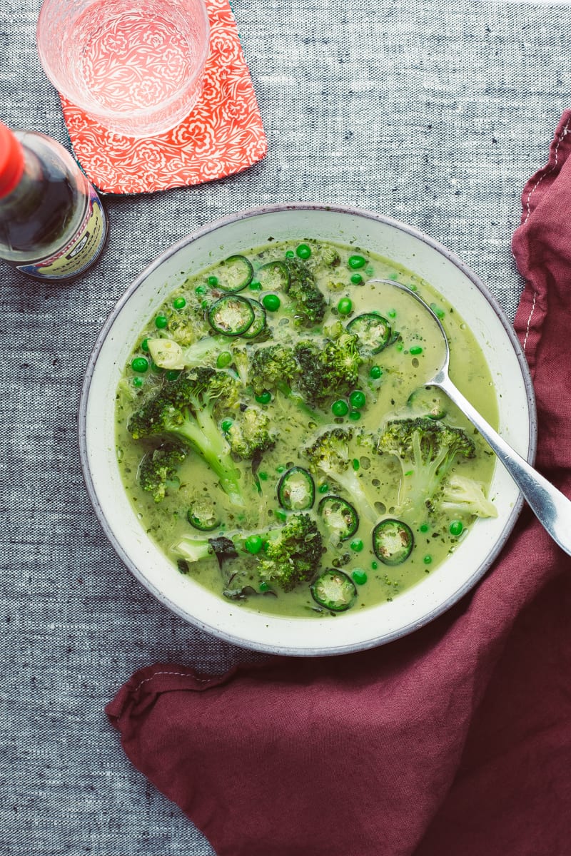 With this pea and broccoli soup I think I’ve achieved just that. The quick curry paste helps impart tons of flavour to the broth in no time at all - that’s my kind of cooking. The end result is a soup that is as far from bland and boring as you can get - great success!