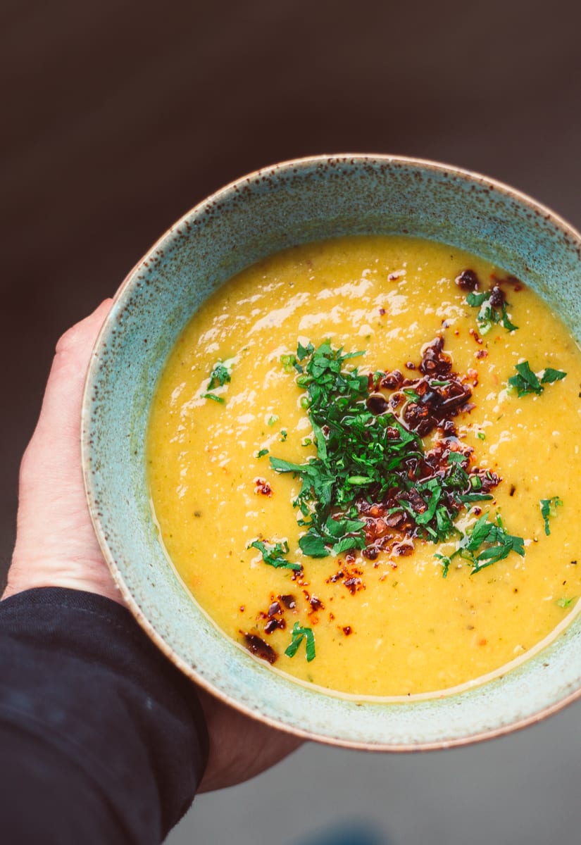 Adding red lentils to the swede soup provides an added nutritional benefit, but it also helps to give the soup a “meatier” texture.